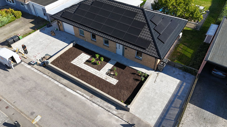 Anläggning av uppfart och hela framsidan av huset